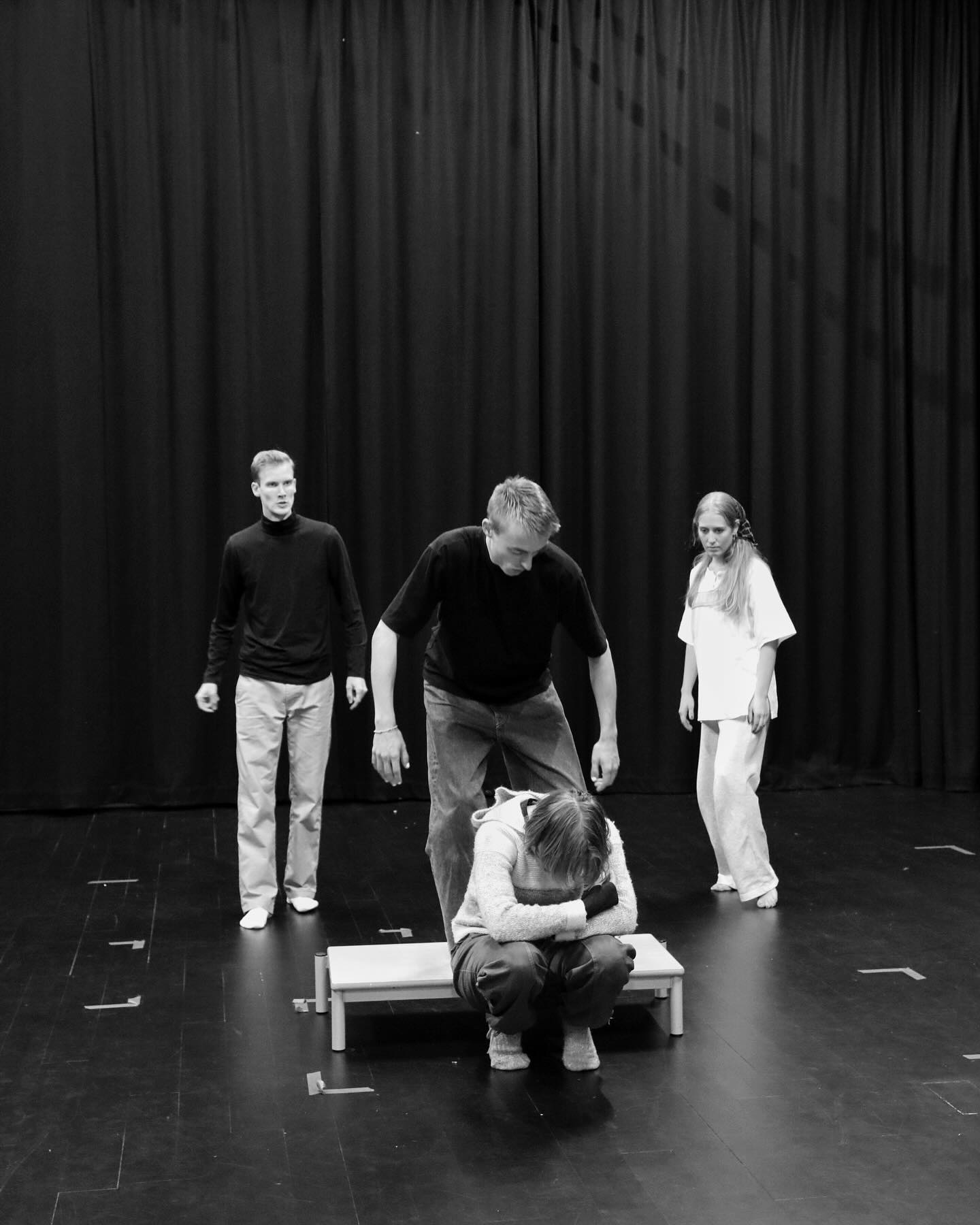 Hva skjer når du har oppdaget at du har et sort hull i magen, og du er sikker på at du har havnet på planeten vår ved en feil? Joni har oppdaget et slikt hull. Og det sluker alt som kommer nærme nok: smil, latter, lys, glede, alt. Den eneste som forstår han er hans lillesøster. Sammen begir de seg ut på en reise gjennom fantasiens univers for å finne svar på hvorfor Joni er så annerledes. Hvorfor han ikke blir forstått, og hvor han egentlig hører hjemme. Men kanskje aller viktigst, hvordan de kan tette det sorte hullet i magen hans. I forestillingen SATELLITTER PÅ HIMMELEN tar vi publikum med på en leken, fysisk og rørende reise gjennom et barns opplevelse av verden, der fantasi, lekenhet og alvor går hånd i hånd.